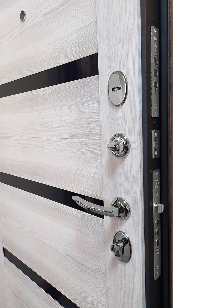 Верхний — сувальдный “ПРОМЕТ”, 3 ригеля 16 мм, РФ (4-й класс взломостойкости) |